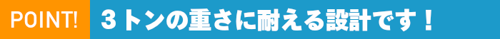エアレイドシェルターは「耐荷重」という、どれだけの重さに耐えられるかという数値を「約3000kg(3トン)」で設計致しました。