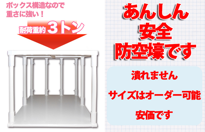 エアレイドシェルターは、そういう事情も考えて、購入しやすい価格設定に致しました。