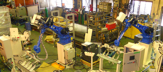 プラント機器・食品機械・真空機器・工業炉・産業用機械などの大型製缶加工から梯子・階段・架台・各種フレーム・足場などの一般製缶加工品まで各種製造に対応致します。